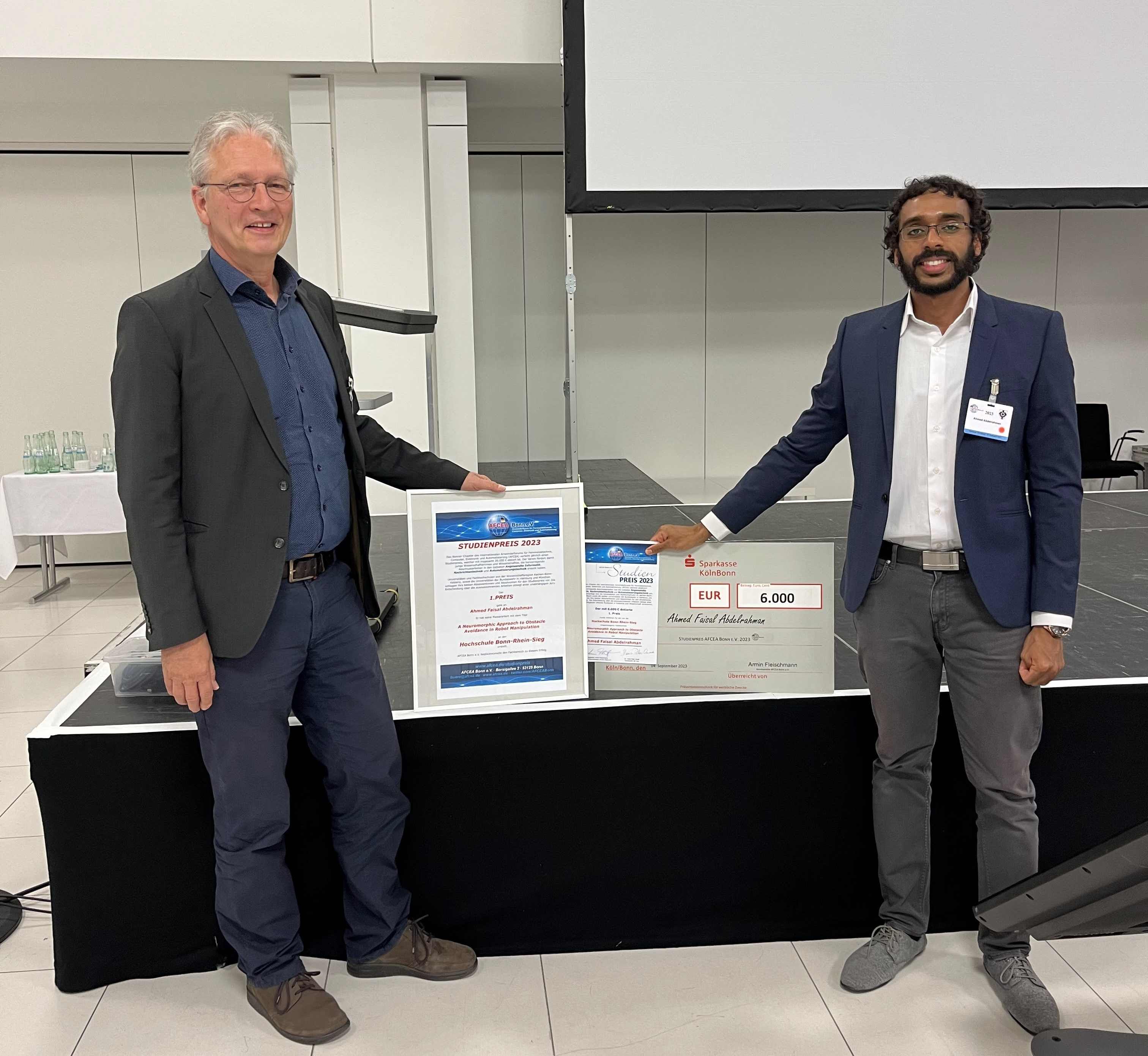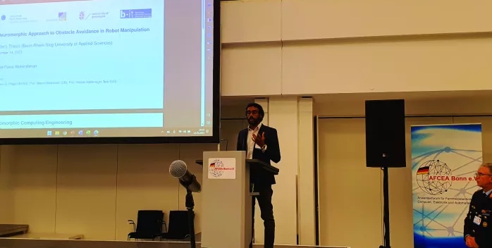 I was honoured to receive the 1st place AFCEA Bonn e.V. Studienpreis award for my Master’s thesis work on vision-based neuromorphic obstacle avoidance on 25.01.2024 in Koblenz at the Koblenzer IT-Tagung 2023.