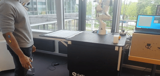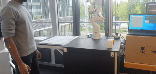 During my research into intelligent neuroprosthetics, I demonstrated a form of myoelectric robot control for object manipulation at the automatica 2025 robotics fair, where a robotic arm is partially controlled through a person’s intention, which is decoded from their forearm EMG signals. This part of my research generally focusses on methods that can enable upper-limb amputees to control prosthetic hands as well as be utilized for controlling robotic manipulator hands through an intuitive, biological signal-based interface.