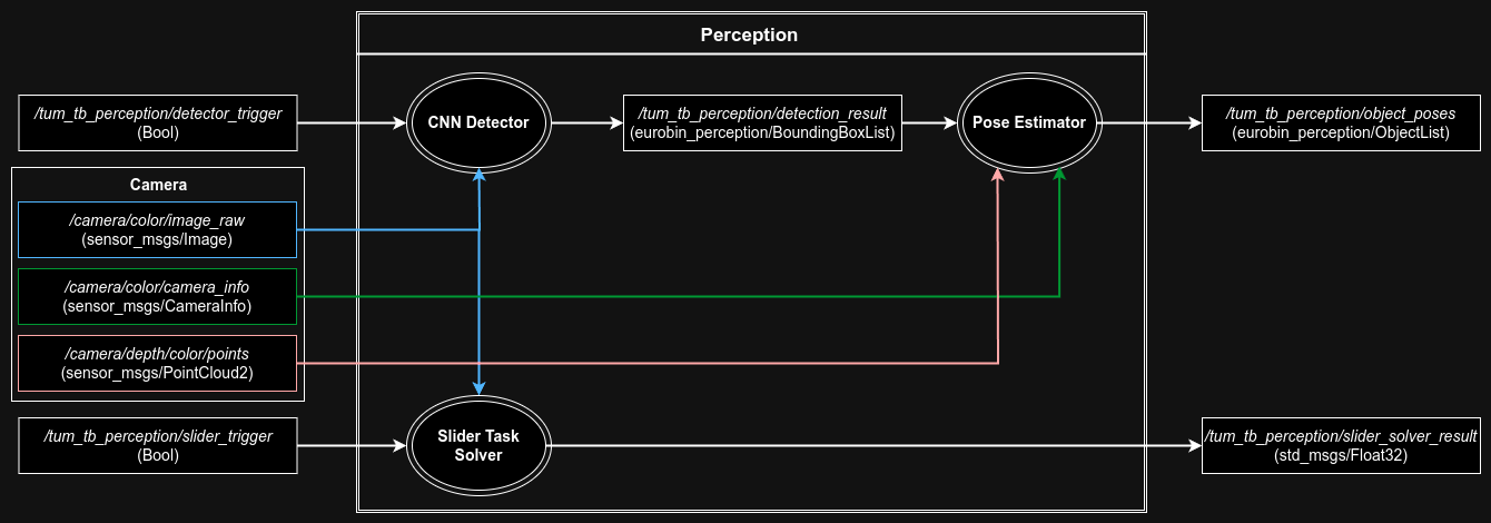 As a contribution to the Horizon Europe project: euROBIN, I developed a reusable, modular object pose estimation software component, which is publicly available in the tum-tb-perception Github repository. This work was presented in (Abdelrahman et al., 2025) at the European Robotics Forum (2025) and was nominated for a best paper award. The software component was also used in a Robocup-style cooperative euROBIN competition by our team (TUM-MIRMI) as well as other competitors, particularly for a set of robot manipulation challenges on a “Taskboard” benchmark platform.